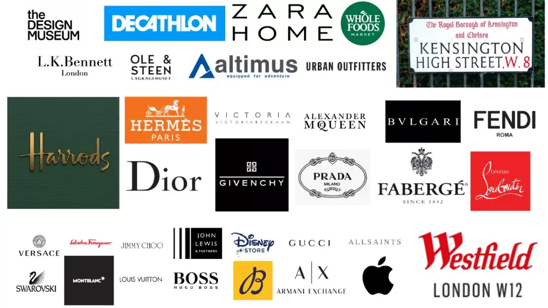 肯辛顿高街上聚集了许多奢侈品大牌,爱马仕,纪梵希,L V,普拉达,迪奥等,还有老牌奢侈百货哈罗德可以逛,从服饰、配饰到食物酒水都一应俱全。