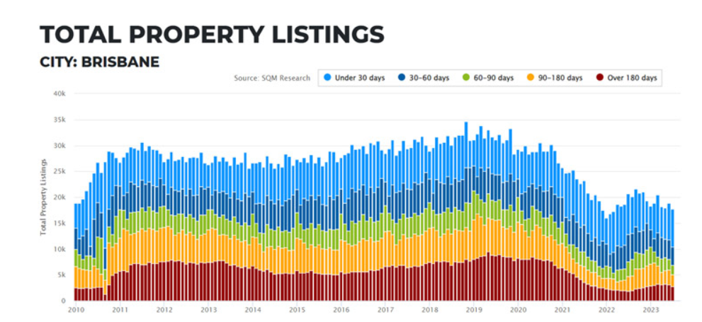 SQMResearch显示,虽然布里斯班的新上市房屋在6月至7月期间增长了2.6%,但总上市房屋数量下降了6.15%。这表明买家也在考虑上市超过30天的房产,这可能是由于卖家不切实际的价格预期,而不是买家缺乏兴趣。