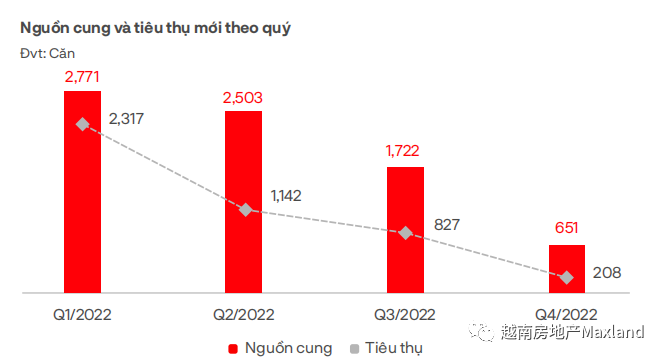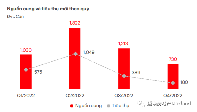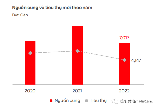 2022年,公寓式酒店有20个项目达4357套公寓开盘推出。新供应的销售率达到65%(2849套),市场需求增加,但不显著,主要分布在巴地-头顿、平定、广宁和广南等部分地区的多个项目中。