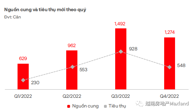 在度假别墅领域,2022年从42个项目中获得了4795套新供应,比去年增加了20%;销售率达到65%(相当于3124套),比2021年增长9%;大部分供应来自中部和北部,平顺、和平、清化、巴地-头顿等旅游发达地区继续为越南全国供应总量和销售量贡献相当大的份额。