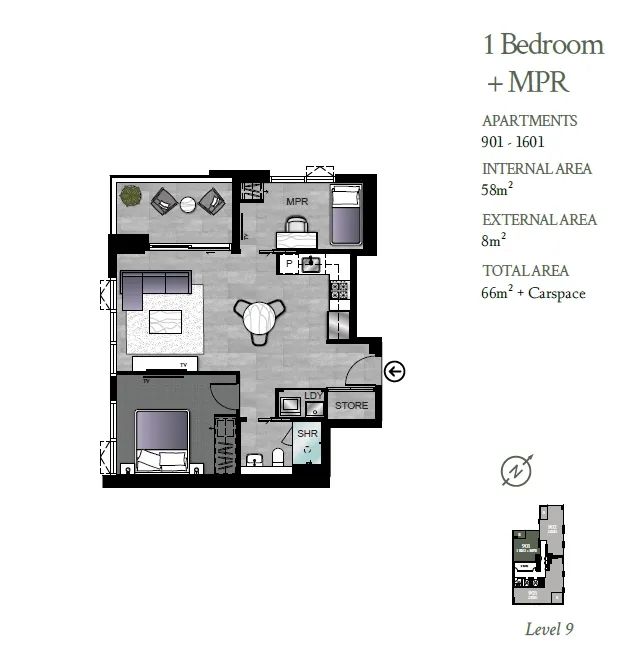 户型推荐 - 西北朝向带多功能房和车位的阳光一房。阳台可以眺望绿意盎然的中心花园景观。多功能房带有明窗,单独空调控制以及储物空间