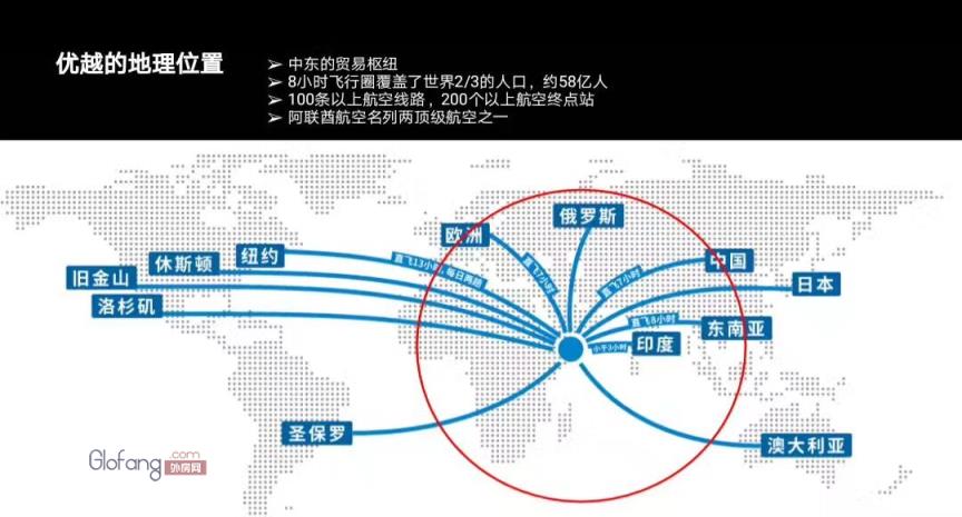 迪拜市中心区有35000个家庭,居住人口为90000人,市中心工作者75000人,交通便捷,十分钟直达迪拜国际机场,1800间零售商店,4000个酒店房间,2000000平方米大型开发项目。